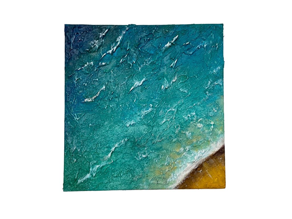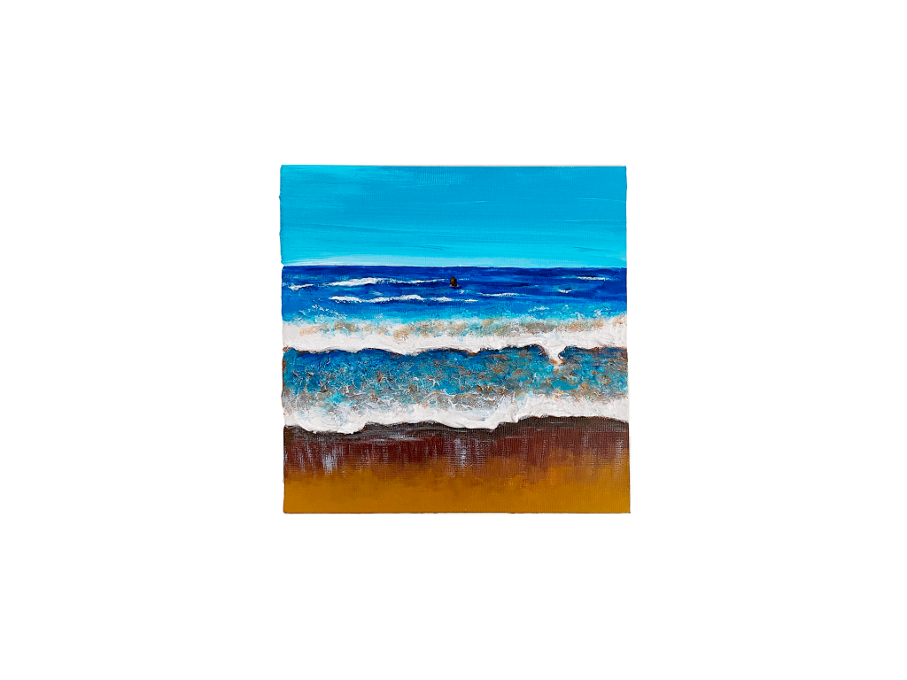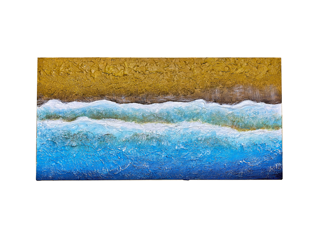 Dentro de la colección Elimental, y como parte esencial de mis primeras obras, se encuentran los Aiguarena, con técnica mixta. La fuerza de las olas y la perspectiva son mensajes en sí.