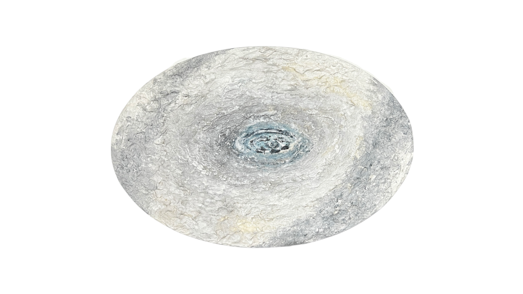 Viene de la obra Sentido, un pequeño lienzo que necesitaba crecer en este ovalado.